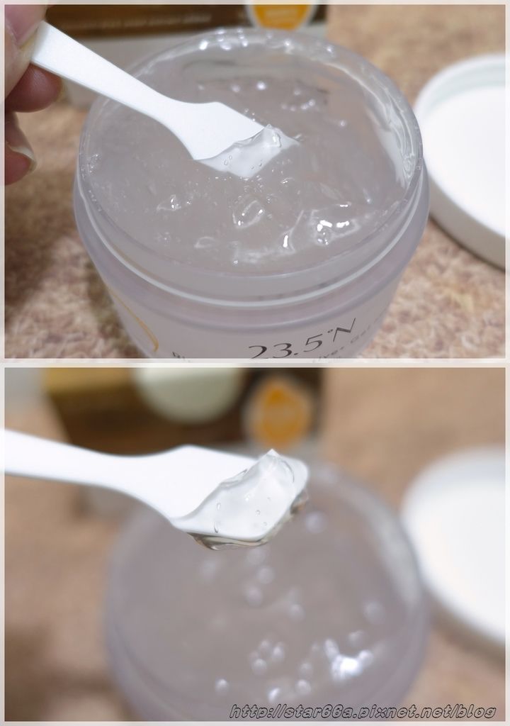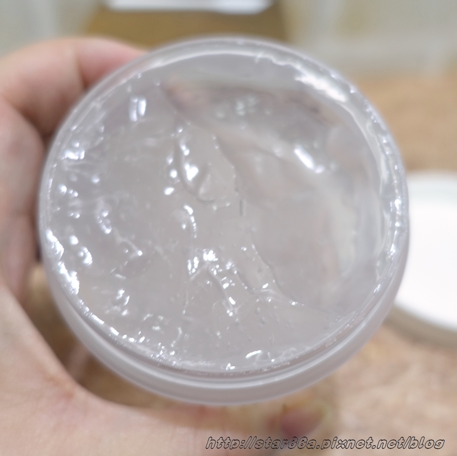 膠膜打開後是透明的凍膜,因為沒有香精的添加,所以沒什麼味道,光看就有一種純淨的感覺呢。