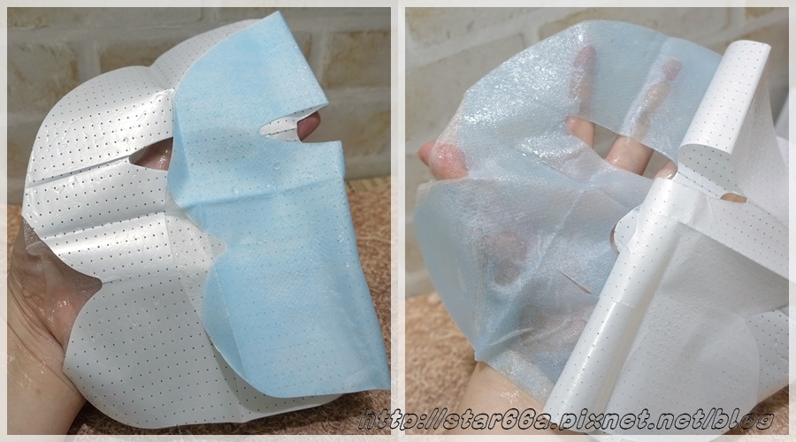 面膜布很輕薄,但是韌性很夠,在調整面膜時拉扯也沒有破掉的狀況,敷在臉上是很舒服的,不會有卡卡不透氣的感覺。